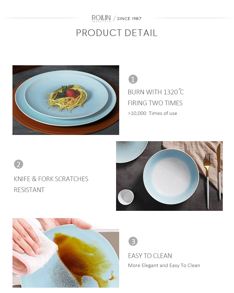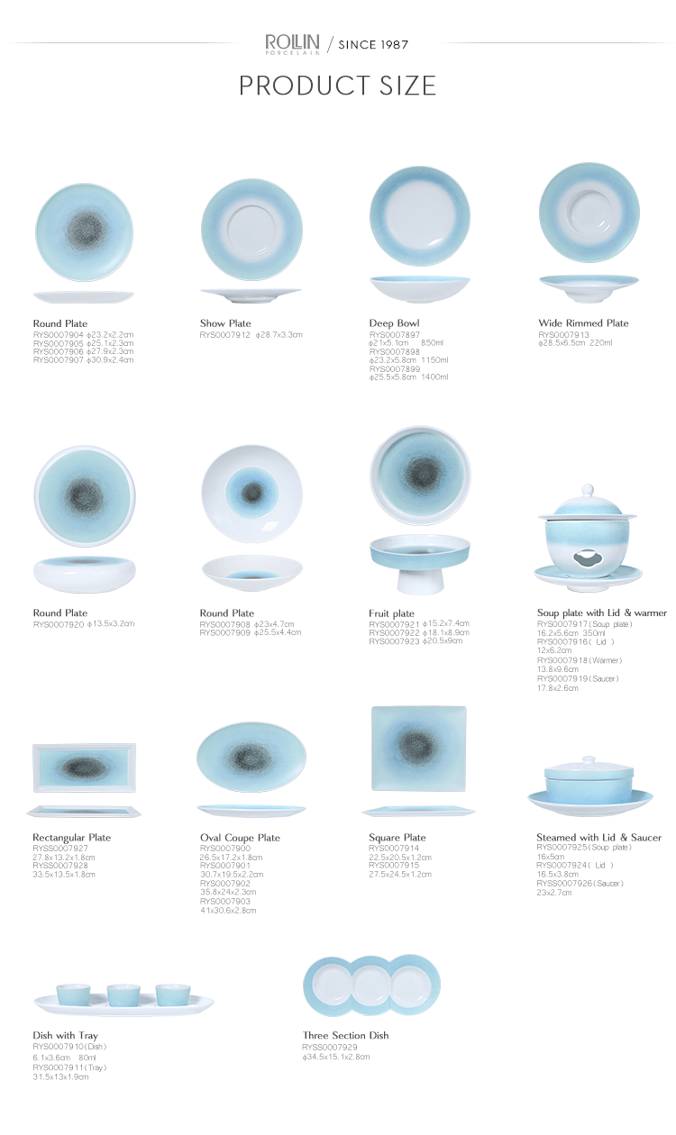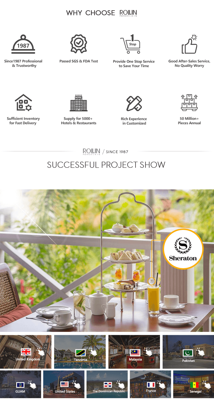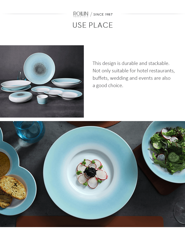 Acest set de veselă este durabil și stivuitor.Nu numai că este potrivită pentru restaurante de hotel, bufete, nunți și evenimente, de asemenea, o alegere bună pentru bucătărie și comerț cu ridicata la domiciliu.